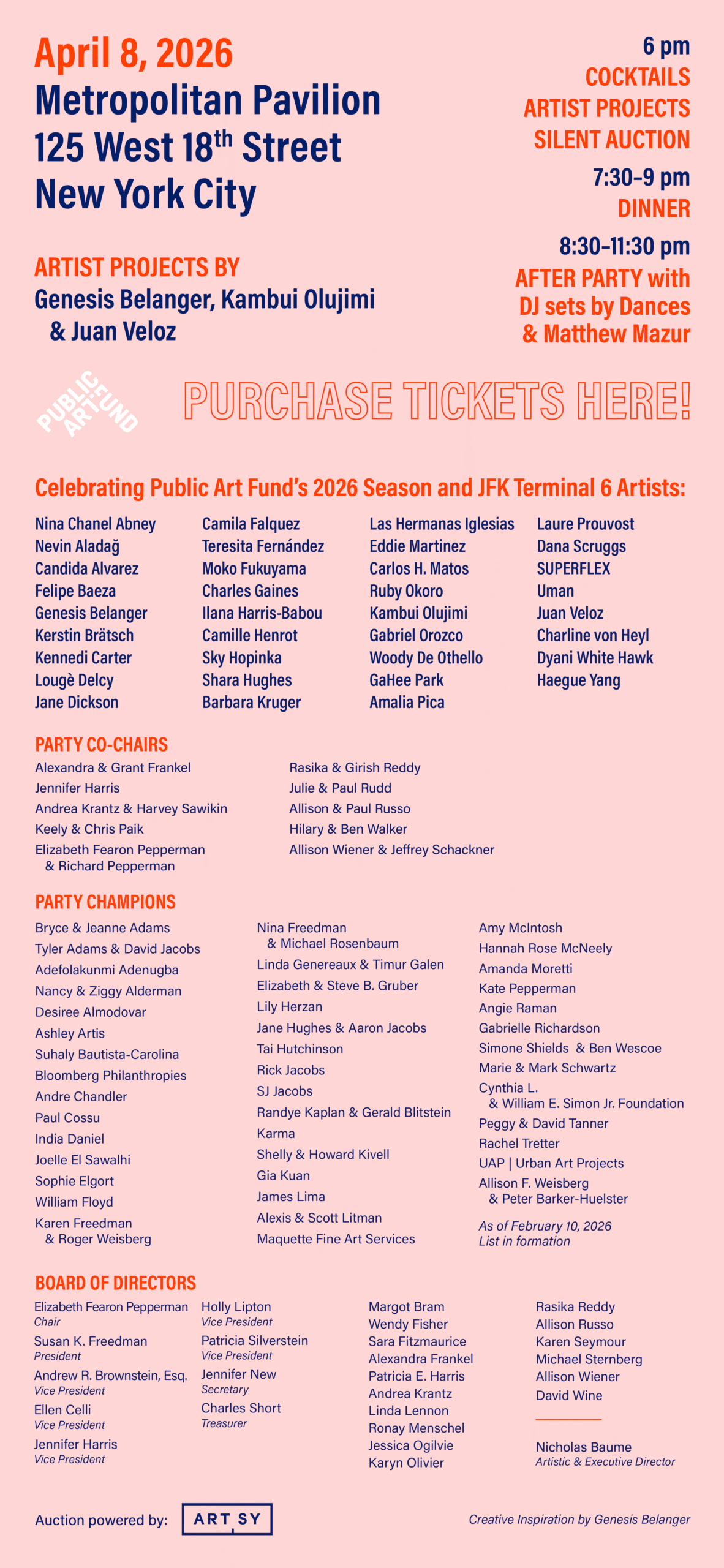 Celebrating Public Art Fund 2026 Season and JFK Terminal 6 Artists: